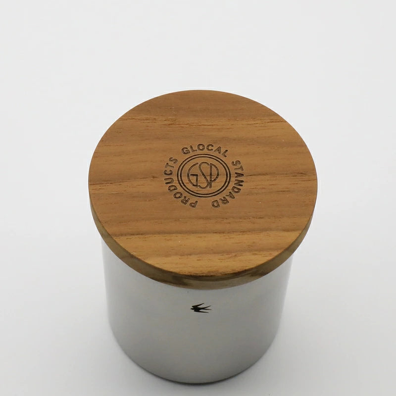 ステンレスの質感と天然チーク材のフタが美しく調和した、シンプルながら存在感のある保存容器です。